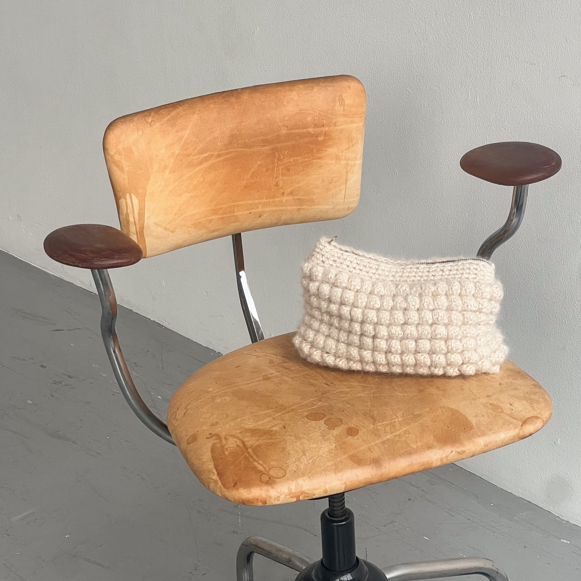 The original bubble bag is crocheted in soft and fluffy alpaca wool and a thread of cotton to maintain the shape of the clutch. This handmade bubble bag features a lovely bubble crochet pattern and has an elegant gold zipper. The clutch is lined with specially selected vintage textiles, which makes each bubble bag completely unique.